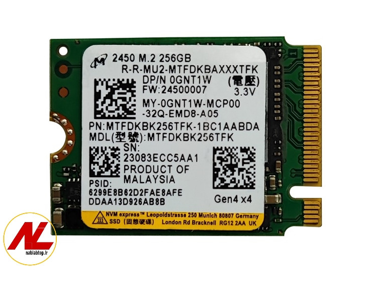 حافظه اس اس دی m2 سایز 2230 ظرفیت ۲۵۶ گیگابایت برند میکرون مدل 2450