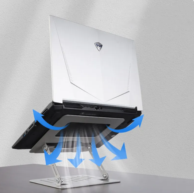-پایه لپتاپ تنظیمات ارتفاع و زاویه قابل تنظیم را ارائه میدهد و به شما امکان میدهد زاویه دید و تایپ ایدهآل را برای راحتی بیشتر و کاهش فشار بر گردن پیدا کنید. این پایه که از آلیاژ آلومینیوم بادوام و سبک ساخته شده است، یک سکوی محکم و پایدار برای لپتاپ شما فراهم میکند و استفاده طولانی مدت را تضمین میکند.