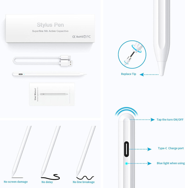 استفاده آسان: نیازی به اتصال بلوتوث یا برنامهها نیست، میتوانید از این قلم لمسی برای مرور وب، یادداشتبرداری، نقاشی و غیره استفاده کنید. فقط کافی است به بالای سر آن دو ضربه بزنید تا روشن شود و آماده استفاده گردد.